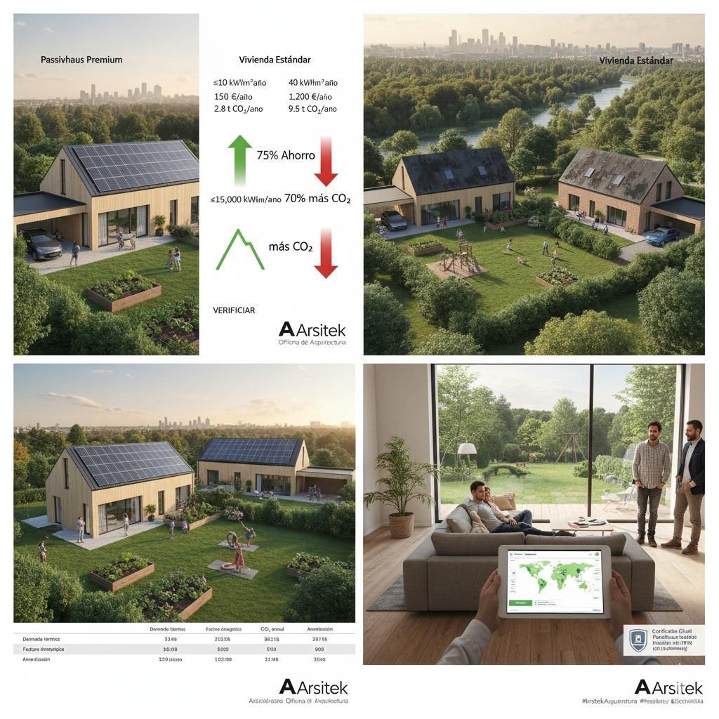 | Aspecto | Passivhaus Premium | Vivienda Estándar | Ahorro |