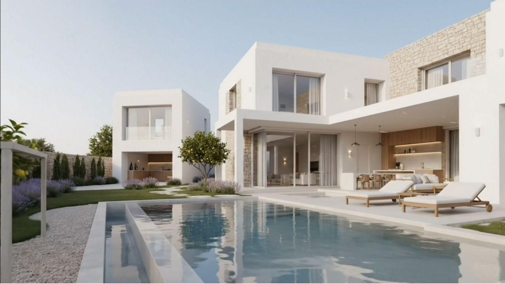 - Conexión Interior-Exterior: Grandes ventanales de suelo a techo que diluyen los límites, permitiendo una transición fluida hacia el jardín mediterráneo y la piscina.